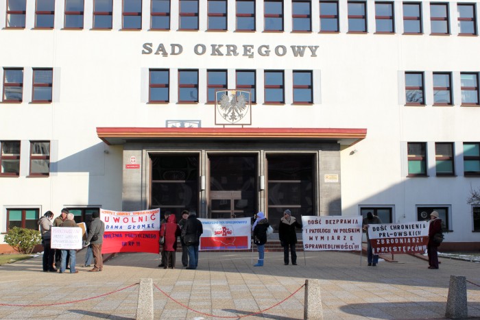 Inne transparenty głosiły: „Uwolnić Adama Słomkę więźnia politycznego III RP!!! – Komitet Obrony Sprawiedliwości”, „Dość chronienia PRL-owskich zbrodniarzy i przestępców!!!”. Pikietę organizowały Stowarzyszenie Osób Represjonowanych w Stanie Wojennym oraz powołany niedawno w Koszalinie oddział ogólnopolskiej organizacji o nazwie Komitet Obrony Sprawiedliwości (KOS).